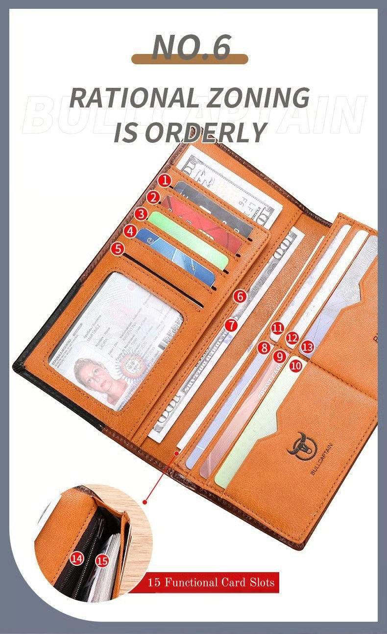 Premium Cowhide Construction: Crafted from genuine vintage cowhide, the wallet offers superior durability and a luxurious feel that develops a unique patina over time.