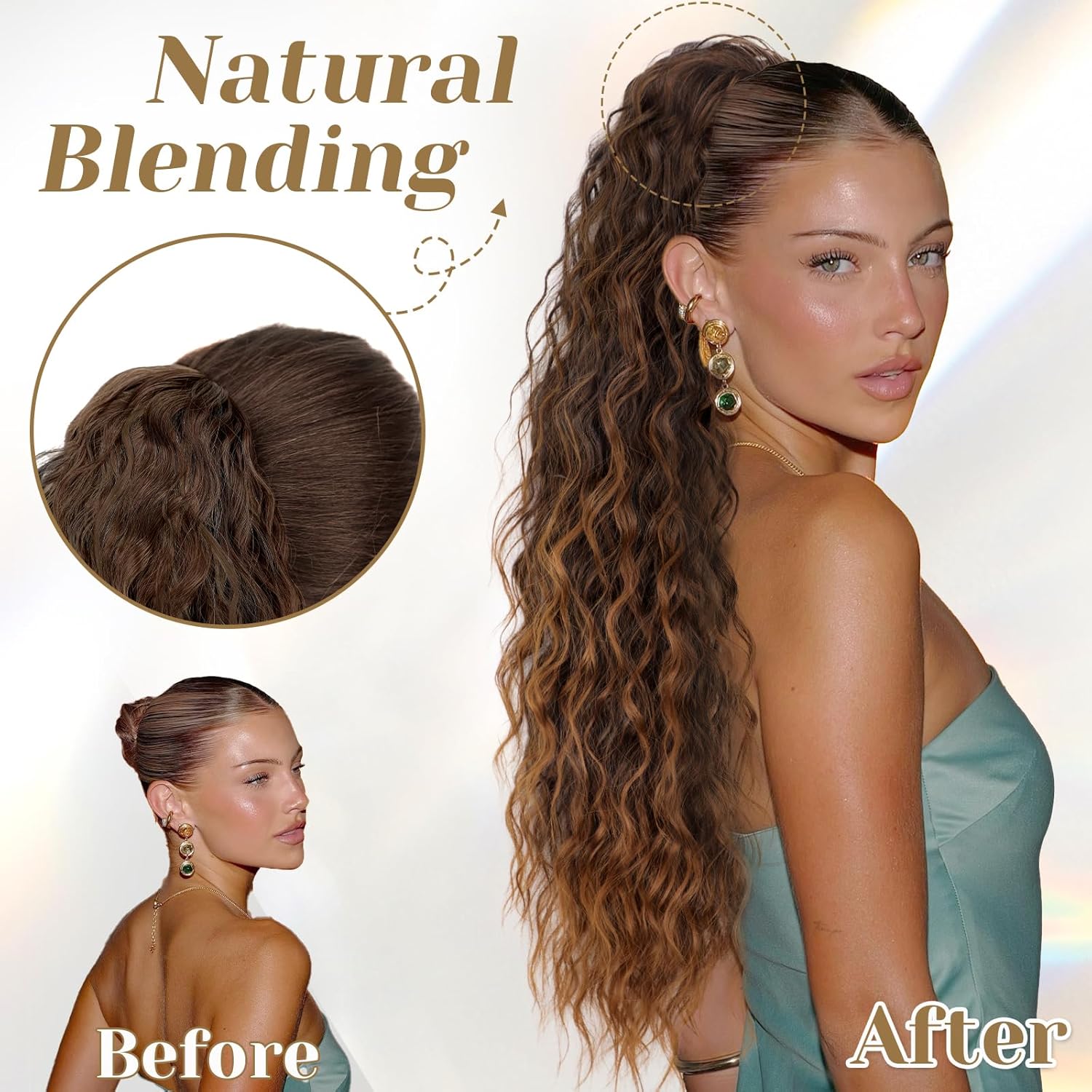 Designed with multiple layers to boost volume and fullness. It wraps your own hair seamlessly, creating a beautiful, natural finish that brings endless compliments.