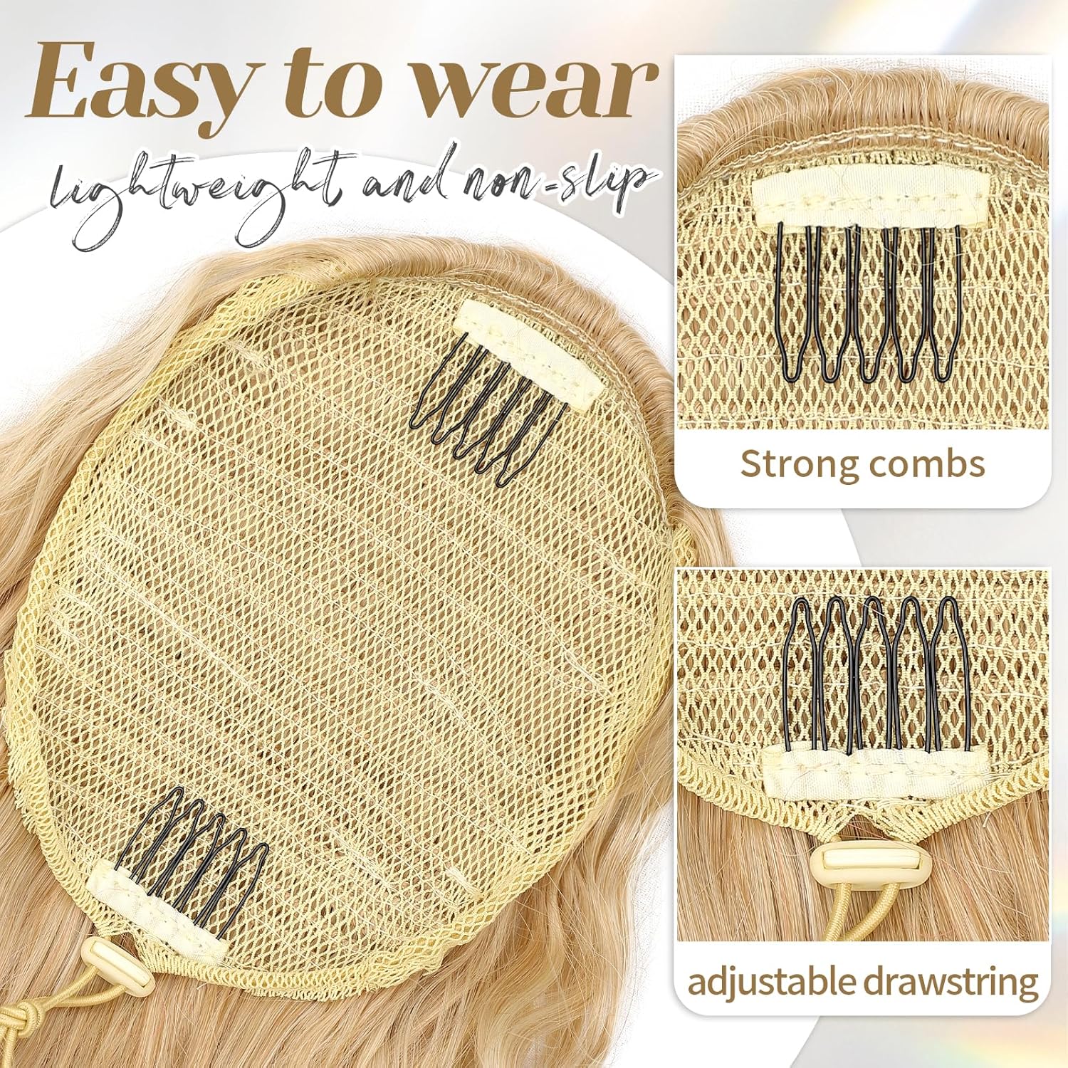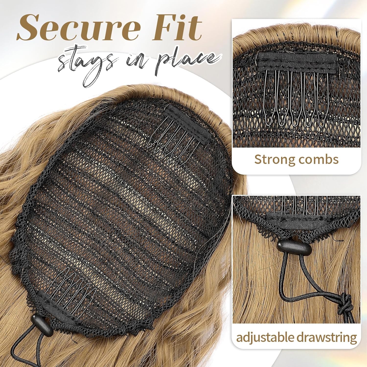 Put it on in just three quick steps—no salon needed. With two built-in combs and a strong elastic drawstring, it stays secure all day without slipping.