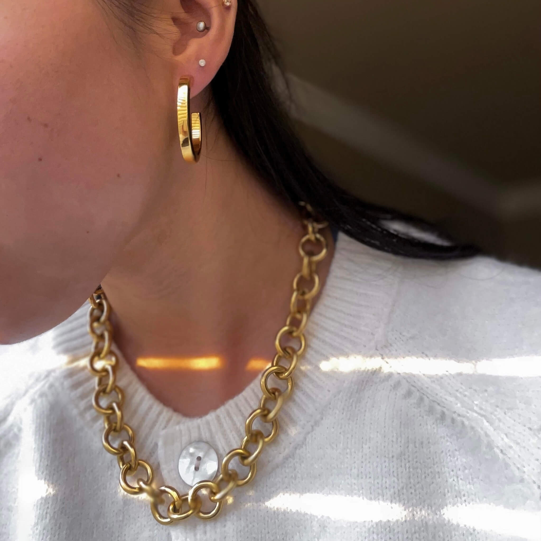 The Baby Bubble Necklace is designed to rest on your collar bone as a low choker and is fastened by our signature O-ring closure for a seamlessly elegant look.