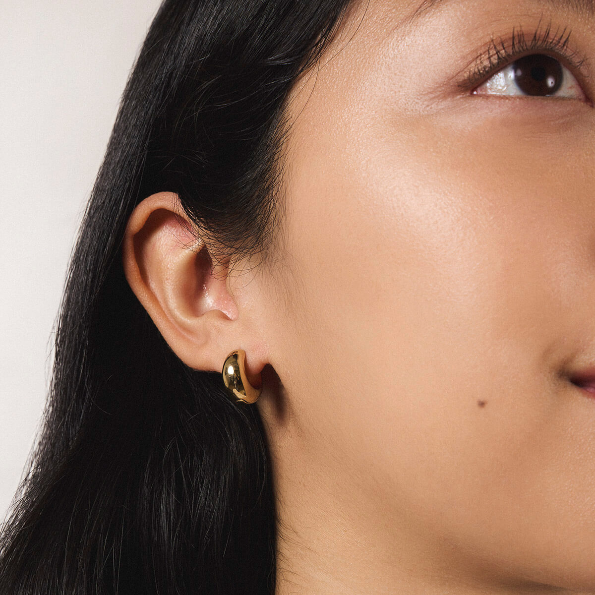 Our tribute to water's perfect form. Dewdrop Huggie Hoops capture the organic shape of a water droplet, creating a bold silhouette that flows naturally with your movements. The rounded design catches light like morning dew, offering a fresh take on the classic huggie that's both striking and serene. Crafted from medical-grade titanium, Dewdrop Huggie Hoops are safe for sensitive skin and built for 24/7 wear.
