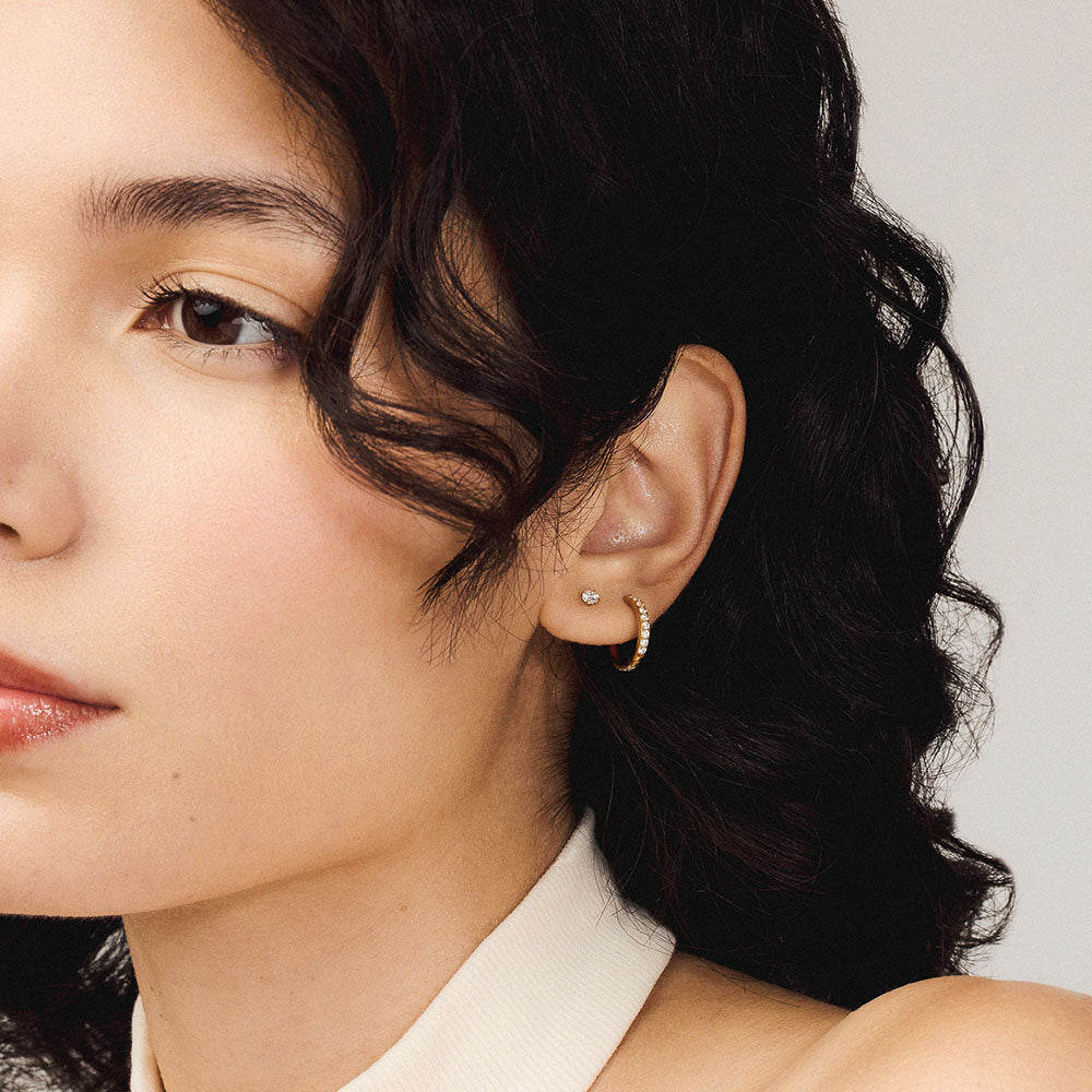 Our classic hoop earrings, featuring an elegant single row of crystals, now available in medical grade titanium for 24/7 waterproof, sweatproof, lifeproof wear. The perfect hoops to anchor your ear party.