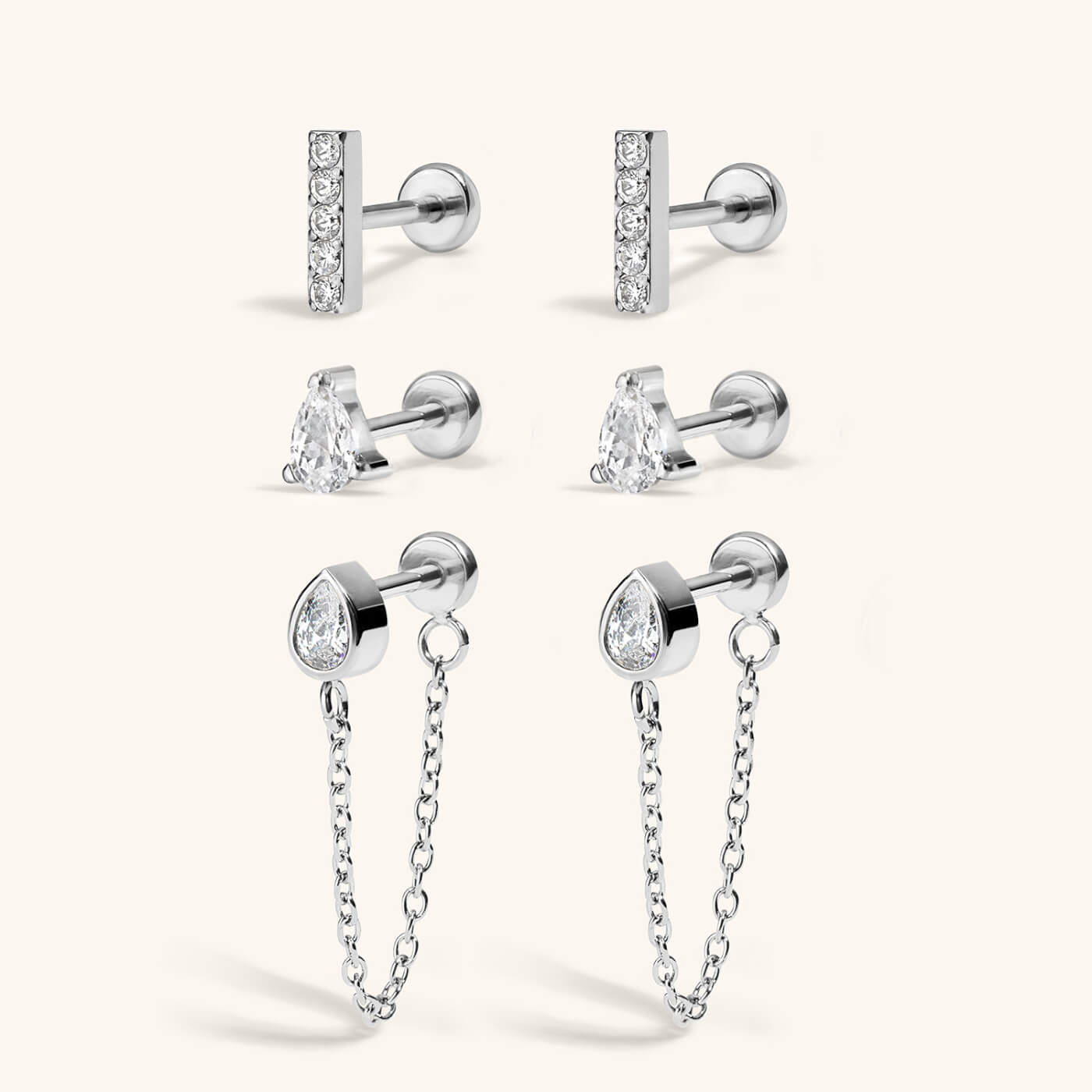 The push pin earring posts are easy to insert and remove from your ears, and the flat back makes them super comfortable to wear. Three pairs of earrings, infinite possibilities. Make it yours.